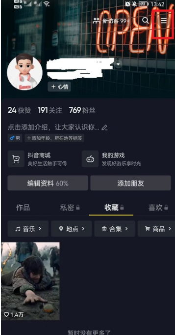 1、打开自己的抖音,在抖音的我界面中,点击右上方的【三】;