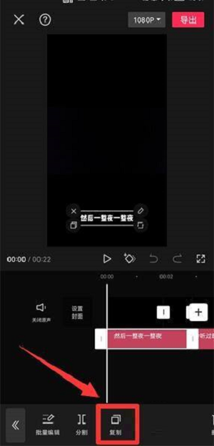 第三步:在下方工具栏中,找到并点击“复制”,长按复制的文字进度条调整位置及编辑即可。