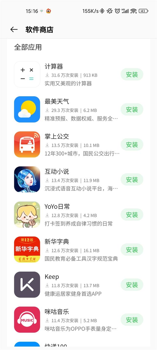 软件商店、Breeno语音助手、音乐控制器、日程安排、世界时钟、计时器、秒表、闹钟、天气、录音、查找手机(仅支持ColorOS 7.1及以上系统机型)等。