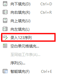 3、单击下拉符号弹出选项,鼠标滑动到“填充”,点击弹出选项“录入123序列”即可;