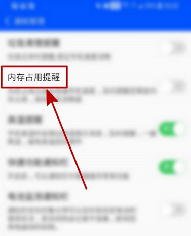 第五步:进入通知设置页面之后,点击“内存占用提醒”。