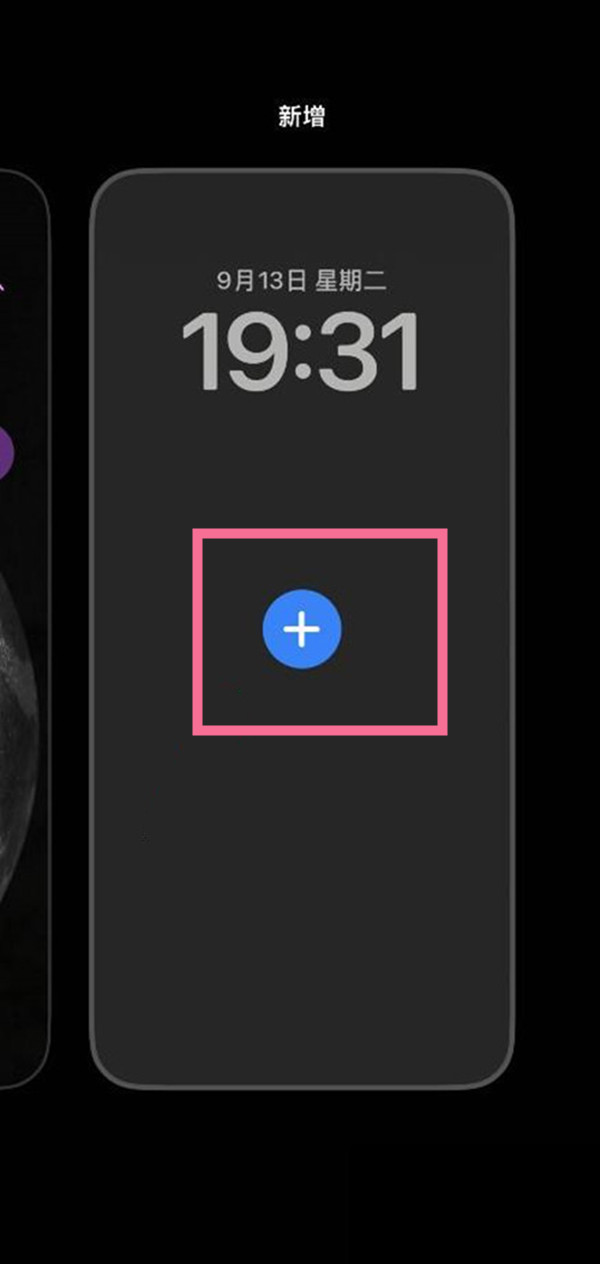 1、长按锁屏界面,滑动到最右侧的新增,点击加号。