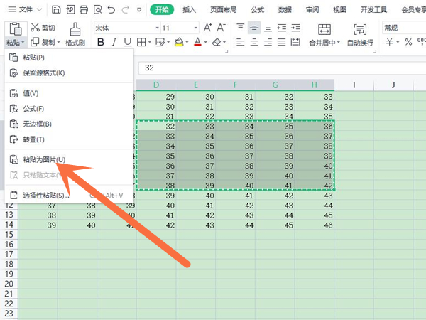 2、再在开始选项下点击粘贴为图片,再使用鼠标拉下来即可。