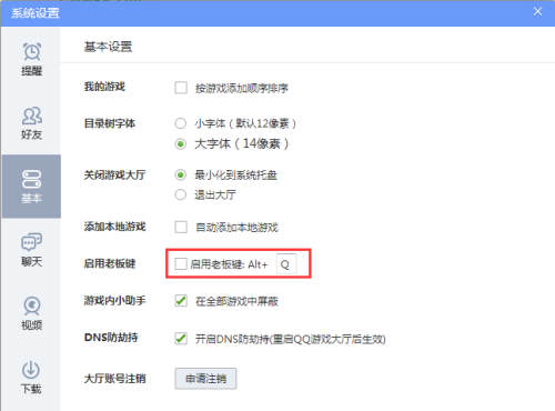 QQ游戏大厅老板键开关设置技巧