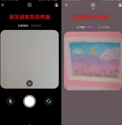 密友之间消息主要是以照片的形式发送给对方。我们还可以发布专属的密友时刻的照片给用户,你的好友也可以随时获取你的惊喜照片。发送密友时刻时,直接在抖音中就可以打开相机,更快地打开记录功能,让用户可以随时的记录生活,分享给自己的好友,将会带来非常亲密的日常生活互动。