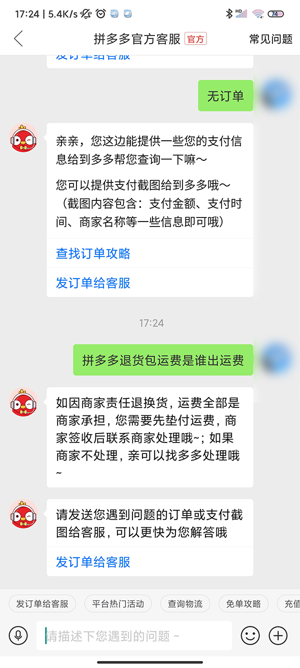 温馨提示:退货物流费需要先行垫付,不要到付,之后保留相关商品问题凭证,待商家收到寄回商品,再联系商家和拼多多客服处理运费。