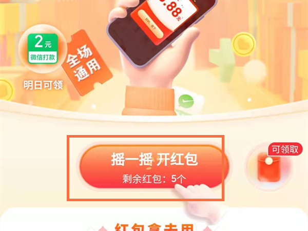 温馨提示,如果底部状态栏没有入口,可在功能图标里找到“每日摇红包”进入。