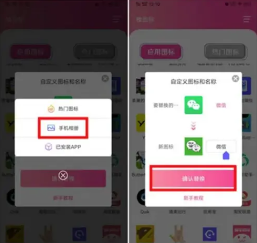 然后在手机的相册里面选择喜欢的图标即可,当然也可以换成你自己的头像啊,或者照片也可以。新图标的名称也是可以更改的,你可以把微信两个字换成别的,这样别人就找不到你的微信啦!