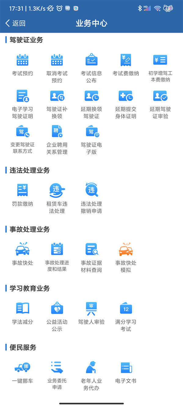 | 提交健康证明 | 开通电子驾照 | 忘记手势密码 | 交通事故查询码 | 绑定非本人机动车 |