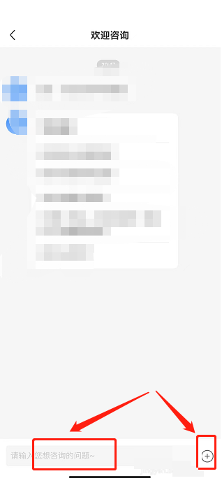 3、最后进入欢迎咨询界面,输入咨询内容,点击【+图标】。