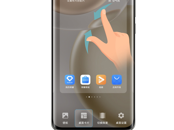 1、在手机桌面两指捏合进入主屏幕编辑状态,点击桌面卡片。