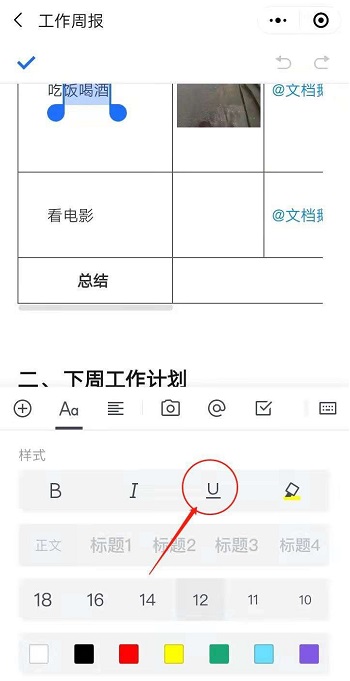 腾讯文档在哪设置下划线?