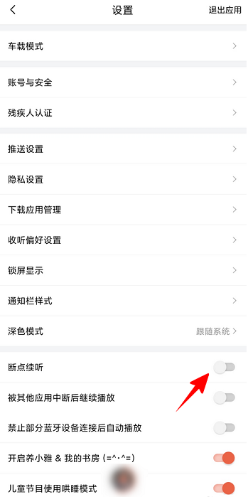 第四步:打开“断点续听”。