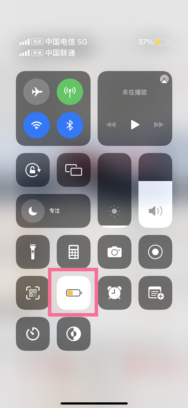 也可以在任意界面从刘海右侧向下滑动打开控制中心,点亮【低电量模式】图标即可。