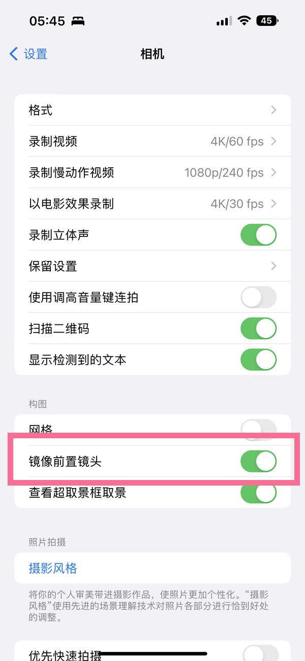 ios16如何设置自拍不反?