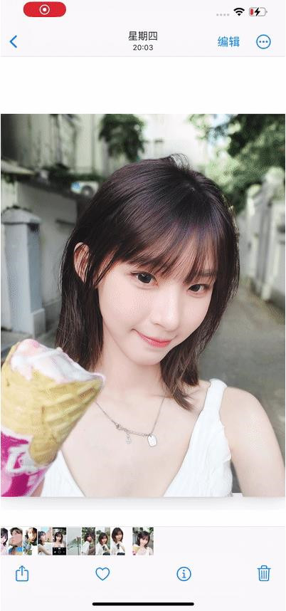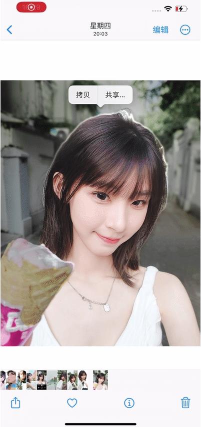 1、在相册里打开照片,手指「长按」照片主体,当主体稍微被放大后松开手指。