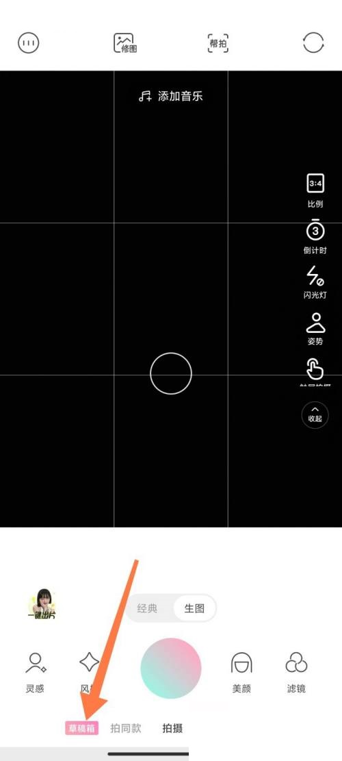 2、然后进入轻颜相机页面,点击【草稿箱】。