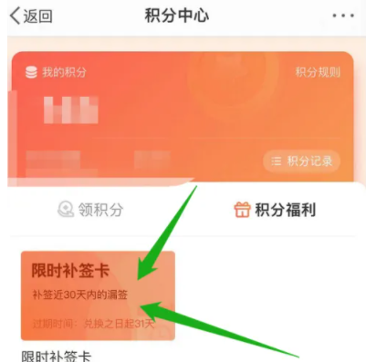 接着点击【限时补签卡】图标进入,如图: