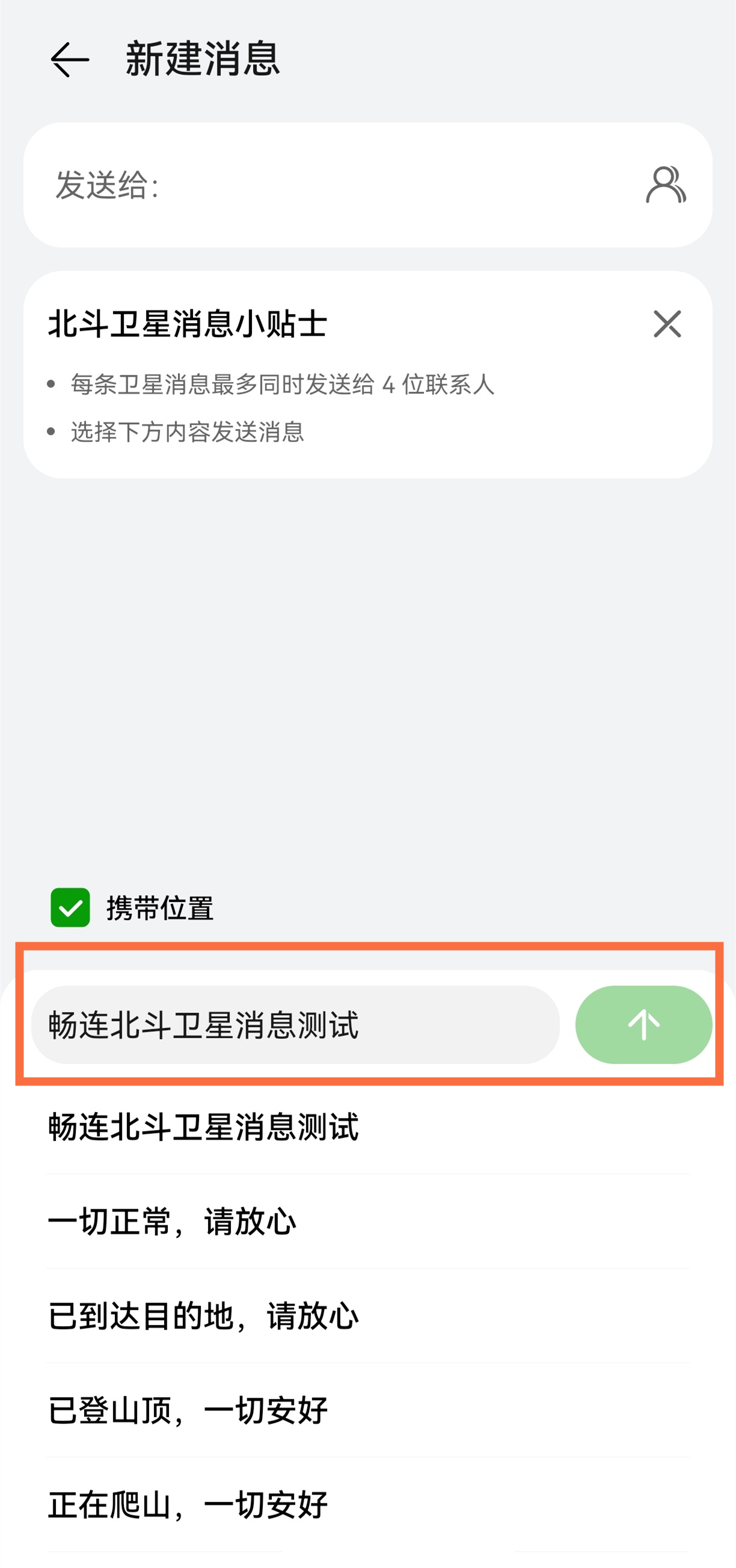 3、激活成功以后,进入发送界面发送卫星消息即可。