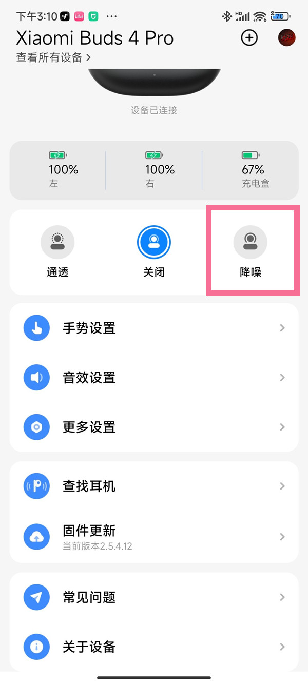 小米buds4Pro在哪调降噪级别?
