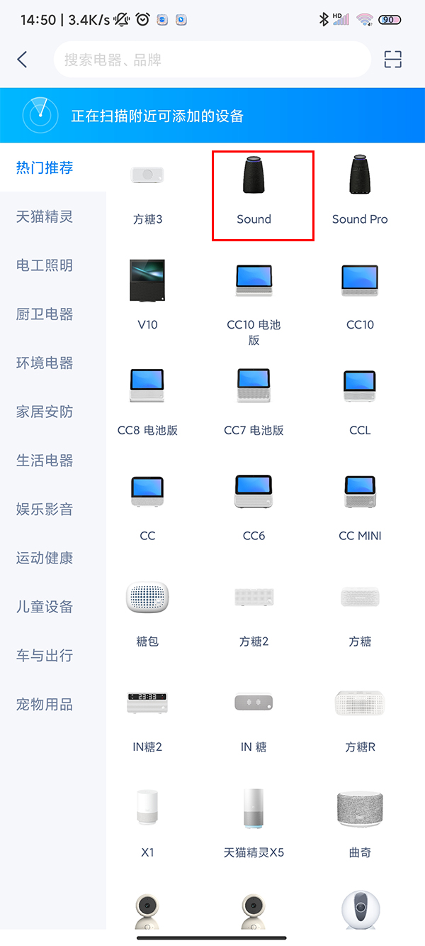 1、打开天猫精灵app,删除已经连接的设备后,重新在在精灵家页面点击添加设备。
