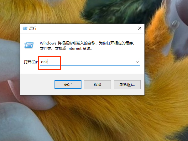 1、按【win+R】两个键,进入到运行界面,在运行界面中,在输入框中输入【osk】,点击【确定】。