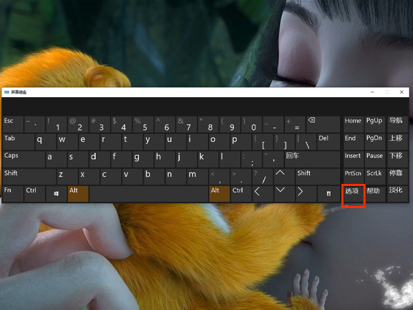 2、接下来在电脑小键盘上,找到‘选项’,点击选项进入到选项设置界面,进行下一步的操作。