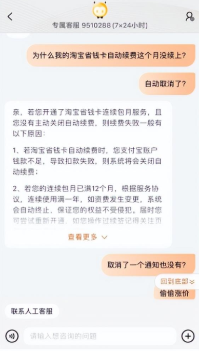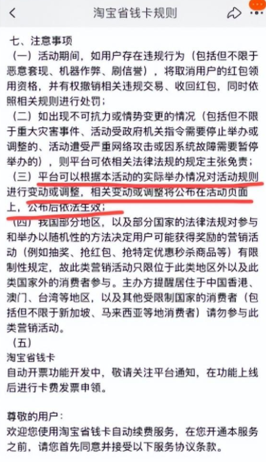 近日有小伙伴称自己的淘宝省钱卡被强制节约了,问了淘宝客服淘宝省钱卡的情况,回复说是连续包月满12个月,自动终止。然后赶紧去看了淘宝省钱卡的规则和协议,也没发现满12个月自动终止这条。自动终止,活动规则调整也没看到通知,就这样被强行解约。