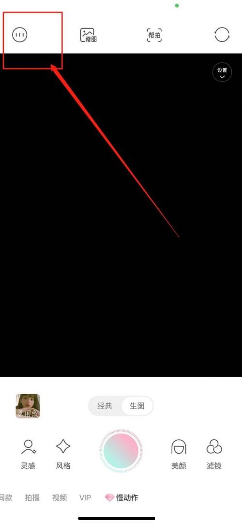 1、首先打开轻颜相机,点击左上角【设置】。