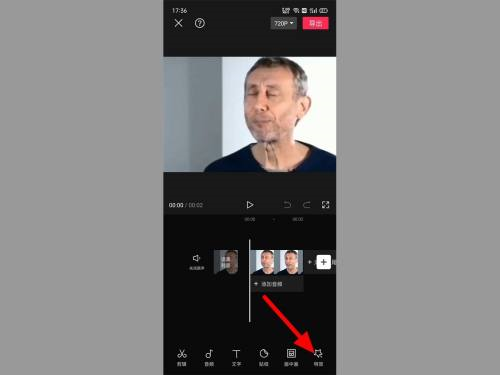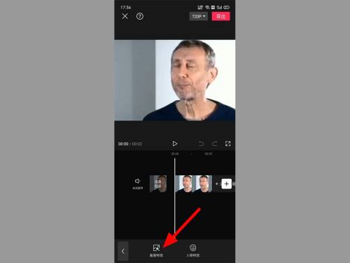 第二步:在编辑界面,单击特效。