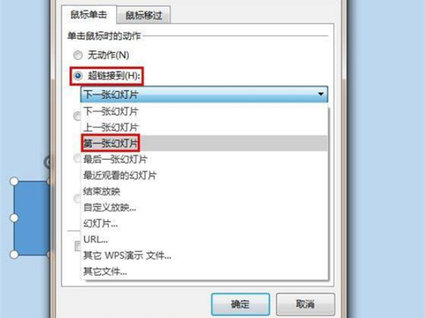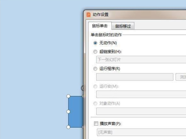 2、在幻灯片中,按住鼠标左键拖动,弹出动作设置对话框。