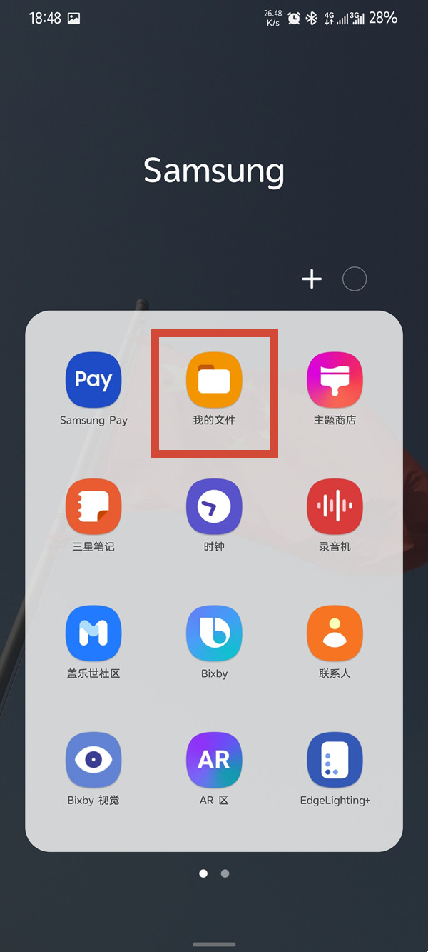 1、打开手机桌面上的Samsung文件夹,点击【我的文件夹】。