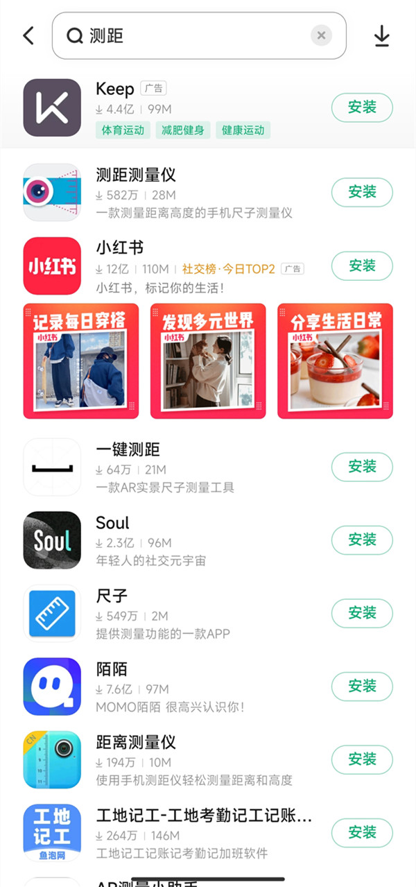 小米手机没有自带的测量工具,可以通过小米应用商店下载第三方测距测量仪APP进行使用。