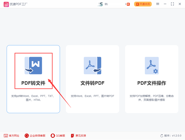 步骤1,先在电脑上下载“优速PDF工厂”工具软件,再安装打开使用。点击首页上的【PDF转文件】功能进入内页,里面可以将pdf转成ppt。