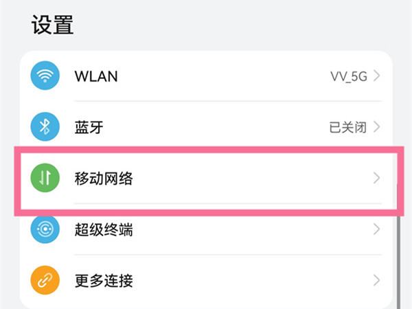 1、在设置菜单下点击进入【移动网络】。