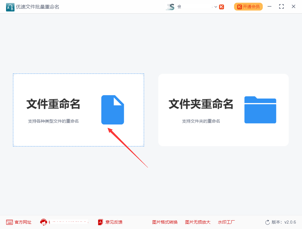 第1步,在电脑上下载“优速文件批量重命名”软件工具后安装,安装完成后打开使用,点击软件首页界面上的【文件重命名】选项进入内页,再进行下一步操作。