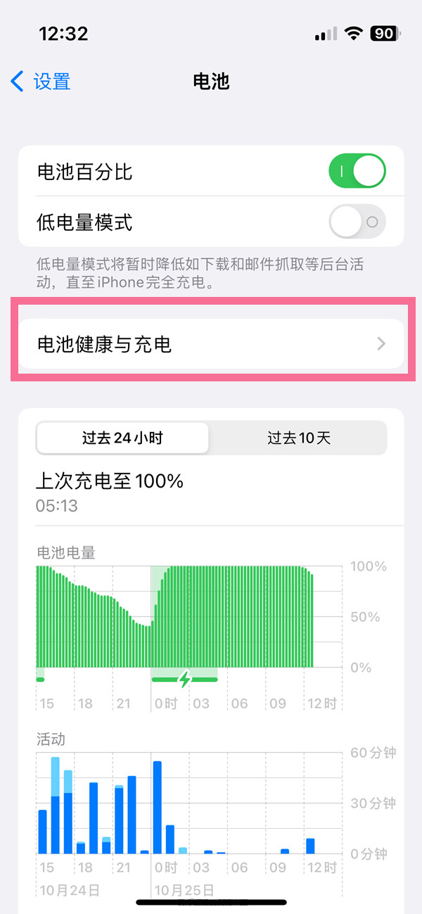 2、点击【电池健康与充电】进入后即可查看电池健康。