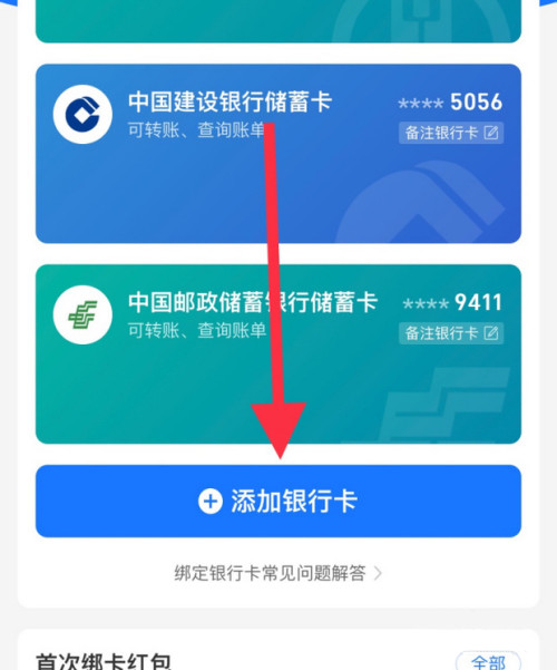 4、点击【添加银行卡】,添加想要变更绑定的银行卡即可。