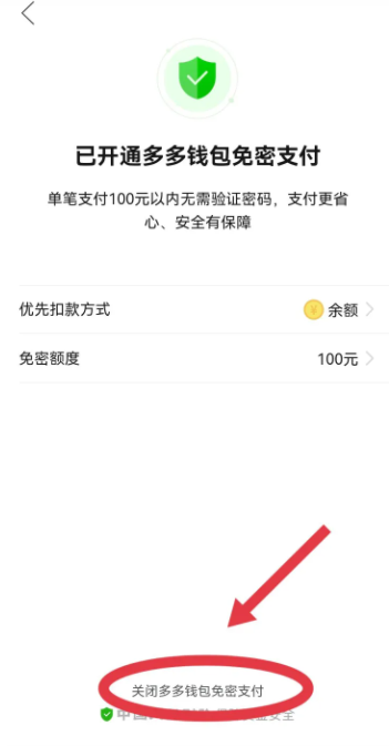 5,点击关闭多多钱包免密支付;