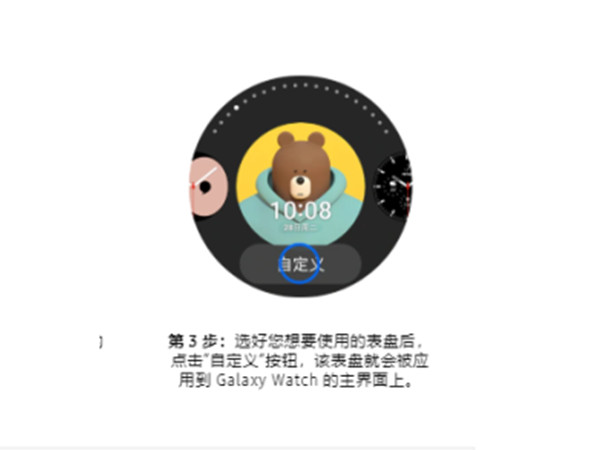 2、选好您想要使用的表盘后,点击“自定义”按钮,该表盘就会被应用到 Galaxy Watch 的主界面上。