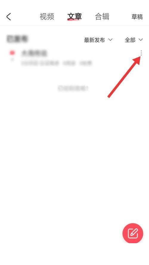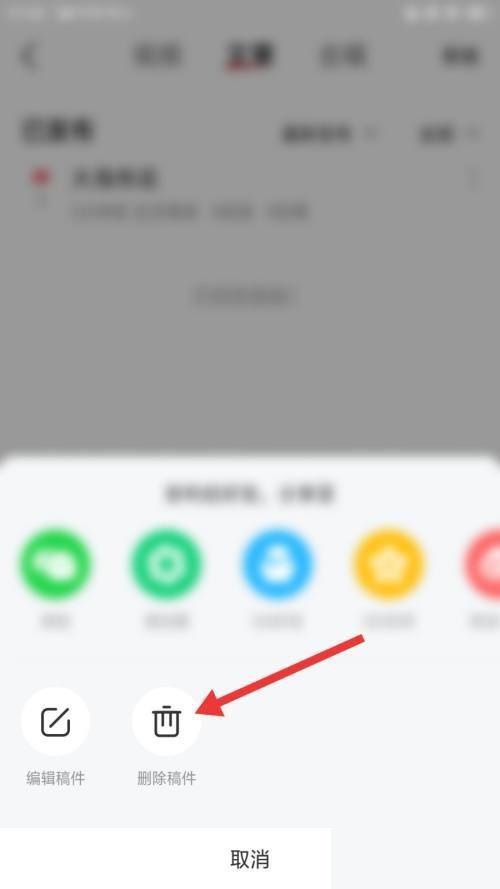 2、然后进入到下一界面后,我们找到需要删除的稿件,点击其后面箭头所指符号。