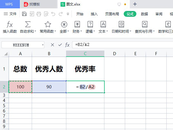 excel求百分比函数公式可以通过在单元格输入除法运算公式完成,其操作步骤如下: