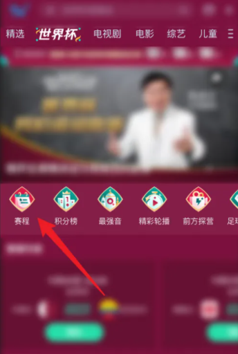 2,进入世界杯页面后,点击“赛程“。