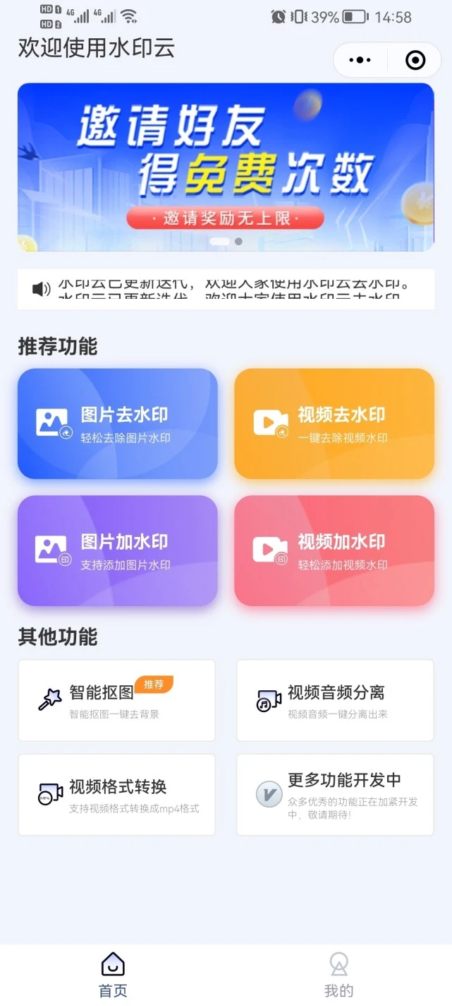 第一步:找到水印云,打开软件,可以看到软件功能非常齐全,界面也很干净,没有乱七八糟的广告