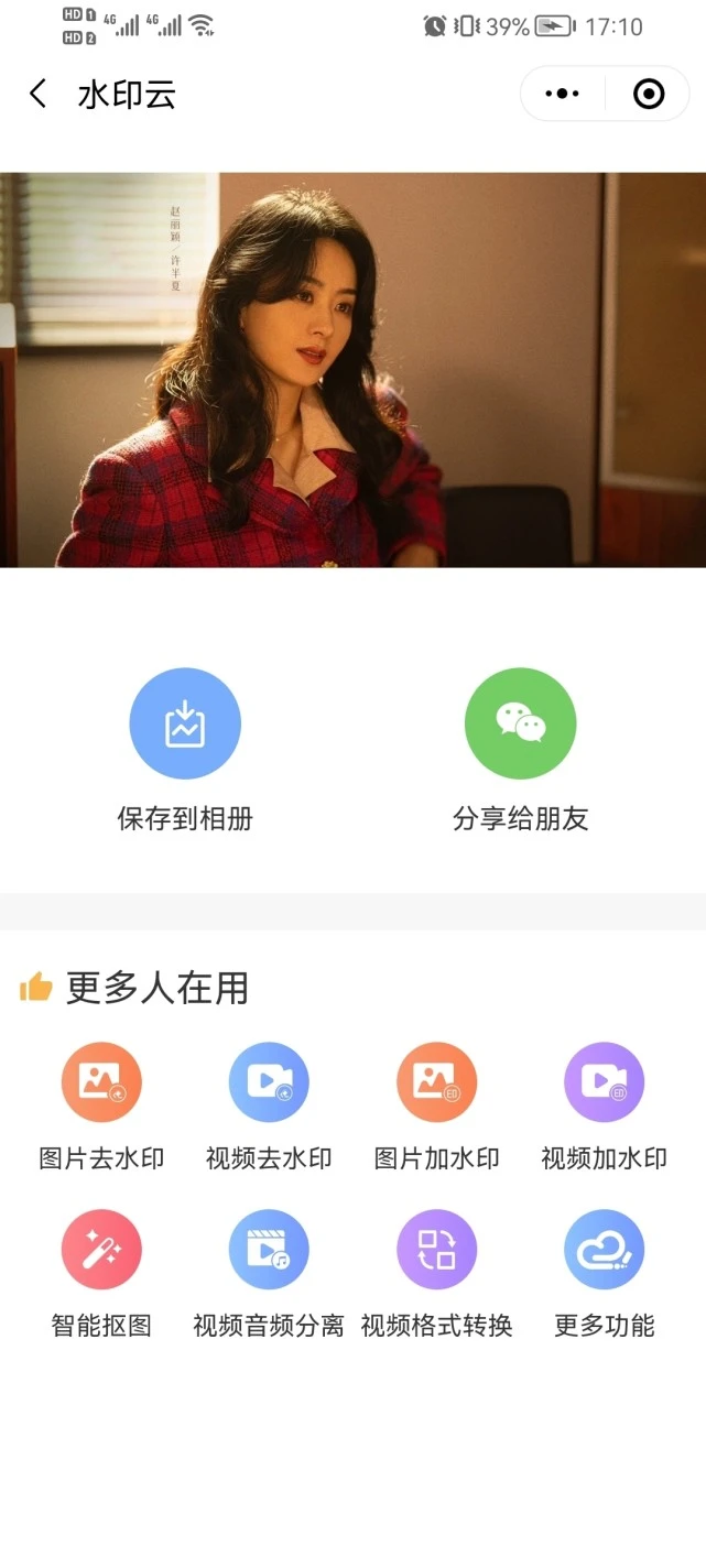 第三步:等待几秒钟,图片中的水印就被去除干净啦,默认会自动保存至手机相。