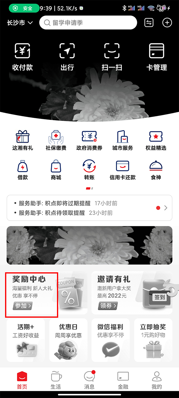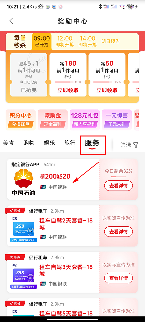 云闪付加油优惠在奖励中心可以领取,领取加油优惠一共有三步,具体操作如下: