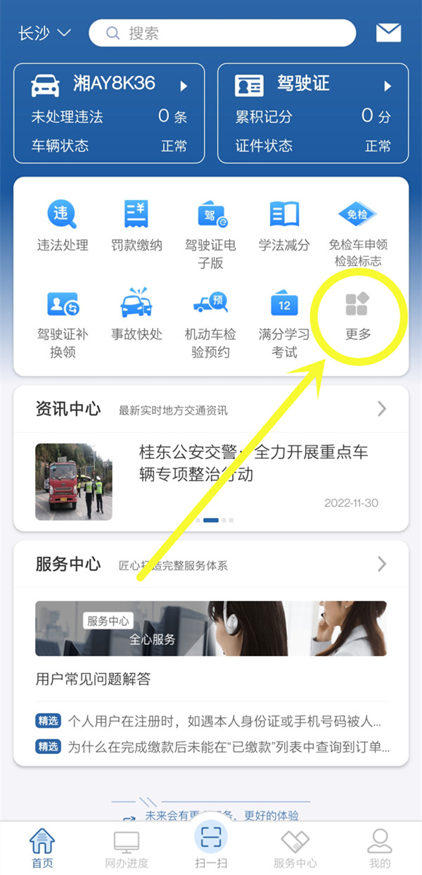 1、打开交管12123首页,点击“更多”。