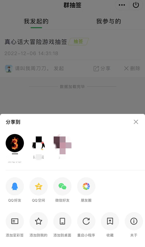 3、选择【发布】后把抽签项目分享到QQ群即可。