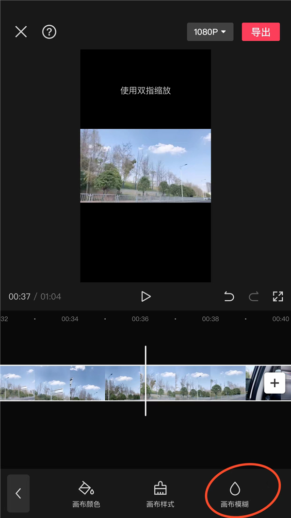 3、点击【背景】,有画布颜色、画布样式、画布模糊三种方式,以【画布模糊】为例;