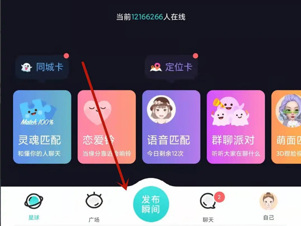 1、打开soul,在首页点击下方的发布瞬间选项。